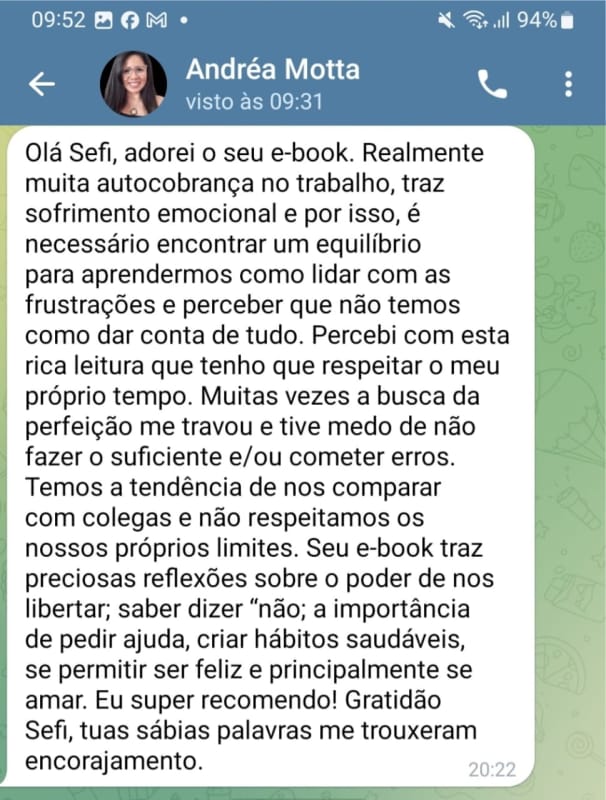 Meu processo de autoconhecimento nunca parou. Hoje vivo bem mais leve, amo meu trabalho e tenho muita satisfação no que faço.