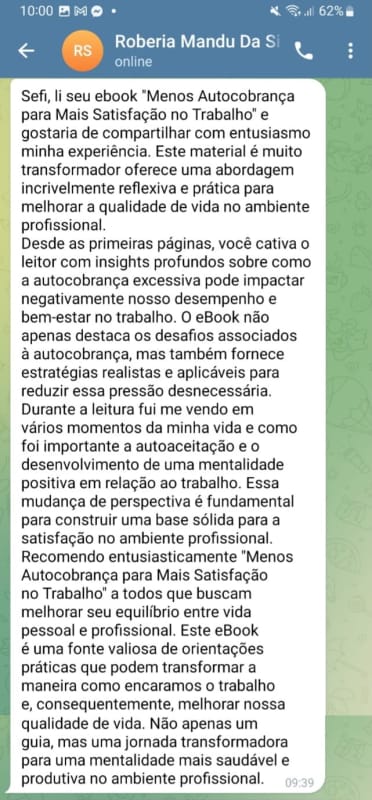 - O e-book "Menos autocobrança para mais satisfação no trabalho": R$97,00